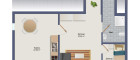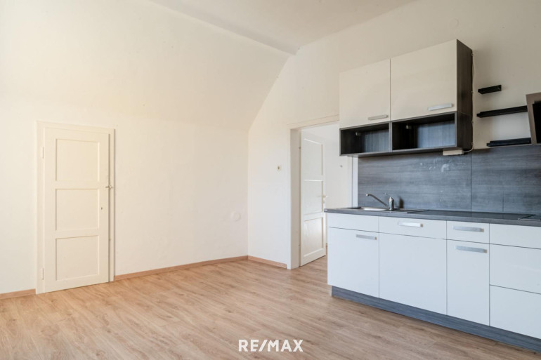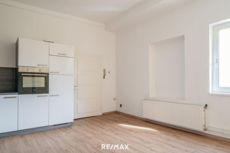 Die Wohn-Ess-Küche mit möblierter Küchenzeile bildet das Herzstück der Wohnung und lädt zum Wohlfühlen ein. Ein Schlafzimmer bietet Rückzugsraum, während ein zusätzliches kleines Zimmer perfekt als begehbarer Kleiderschrank, Home-Office oder Stauraum genutzt werden kann. Das Badezimmer ist mit Dusche und Waschmaschinenanschluss ausgestattet – praktisch, modern und auf das Wesentliche reduziert.