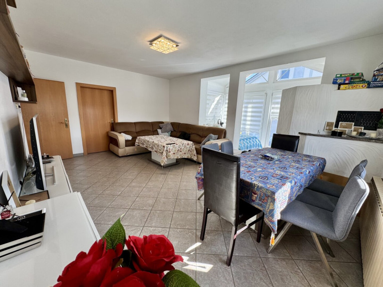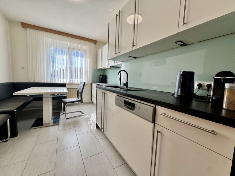 Die Innenräume sind mit hochwertigen Materialien ausgestattet. Fliesen und Laminat schaffen eine harmonische und pflegeleichte Atmosphäre. Gemütliche Abende verbringen Sie am Kamin, während die Zentralheizung an kalten Tagen für wohlige Wärme sorgt. Die moderne Einbauküche lädt zum gemeinsamen Kochen und Verweilen ein und bietet ausreichend Platz für kulinarische Abenteuer.