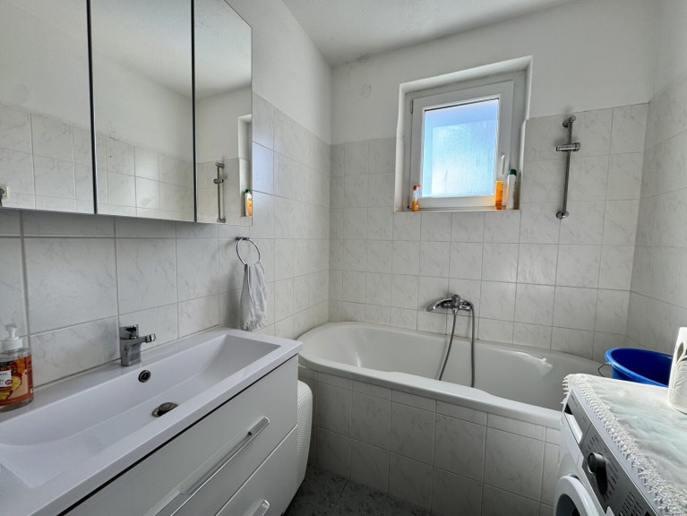 Das Haus verfügt über zwei WCs und zwei Bäder, die jeweils mit einem Fenster ausgestattet sind. Dies sorgt nicht nur für eine angenehme Belüftung, sondern auch für ausreichend Tageslicht – ein weiterer Vorteil, den Sie in Ihrem neuen Zuhause genießen werden. Auch ein praktischer Wasch- und Trockenraum ist vorhanden, der Ihnen den Alltag erleichtert.