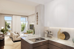 Die Wohnung ist vollständig zum ruhigen Innenhof hin ausgerichtet und bildet eine wahre Ruheoase mitten in der Stadt.