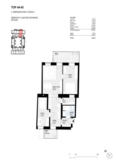 Vom Vorraum gelangt in den Küchenbereich, der mit einem kleinen Balkon (ca. 4 m²) punktet. Weiter in den lichtdurchfluteten Wohnbereich, der Zugang zu einem ca. 9,25 m² großen Balkon bietet. Darüber hinaus verfügt die Wohnung über zwei gemütliche Schlafzimmer. Das moderne Badezimmer sorgt für höchsten Komfort. Ein praktischer Schrankraum bietet zusätzlichen Stauraum.