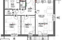 Am Beispiel der 2-Zimmer Wohnung Top 11 auf Stiege 1: