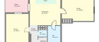 Raumaufteilung: Vorraum, Küche mit Essplatz, 2 Zimmer, Bad, WC, AR, Balkon