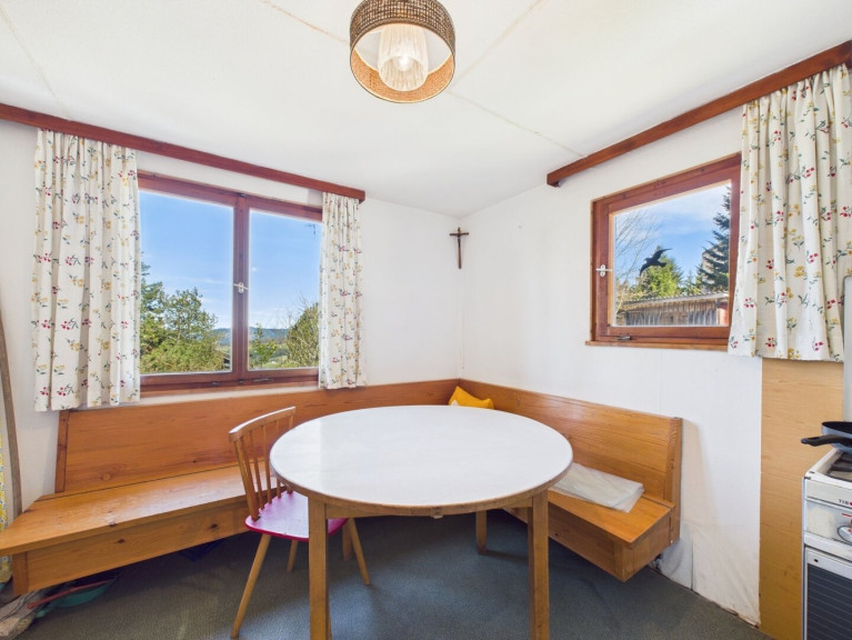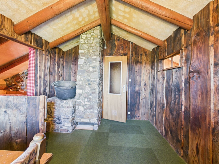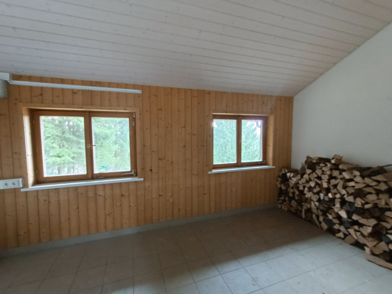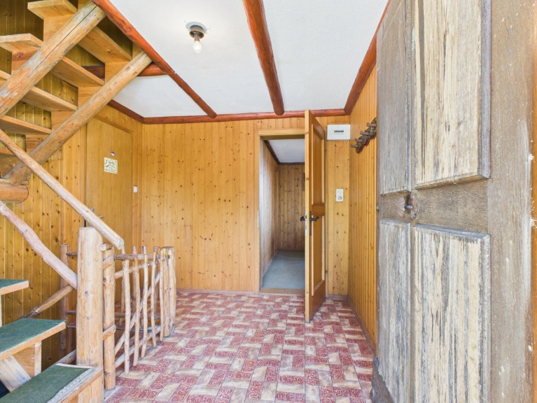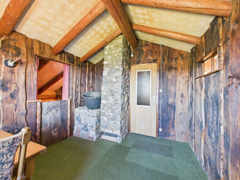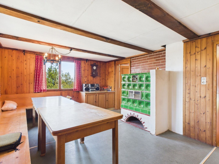 Auf dem Grundstück befindet sich eine ca. 101 m² große Ferienhütte samt Garage und Lagerraum (Zubau aus dem Jahr 1992). Das Gebäude ist sanierungsbedürftig, kann aber als Ausgangspunkt für kreative Ideen genutzt oder durch einen Neubau ersetzt werden.