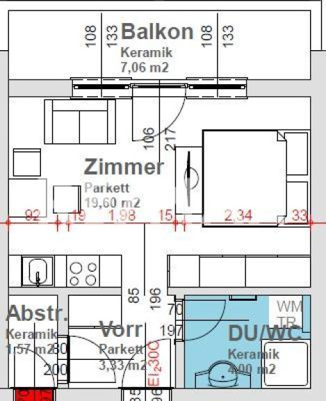 Vorraum, Bad/WC/Du, WC, Wohn/Schlaf-Koch und Essbereich