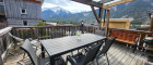 Im Erdgeschoss geht es aus dem Eingangsbereich mit dem kleineren Bad inklusive Dusche in den Wohn- und Essbereich und die Küche mit Spüle, Herd, Backofen, Mikrowelle sowie allem Zubehör für bis zu 8 Personen. Ebenfalls im Erdgeschoss liegt eines der 4 Schlafzimmer. Eine teilüberdachte Terrasse zeigt einen traumhaften Blick auf die 2.000er Berge in der Umgebung.