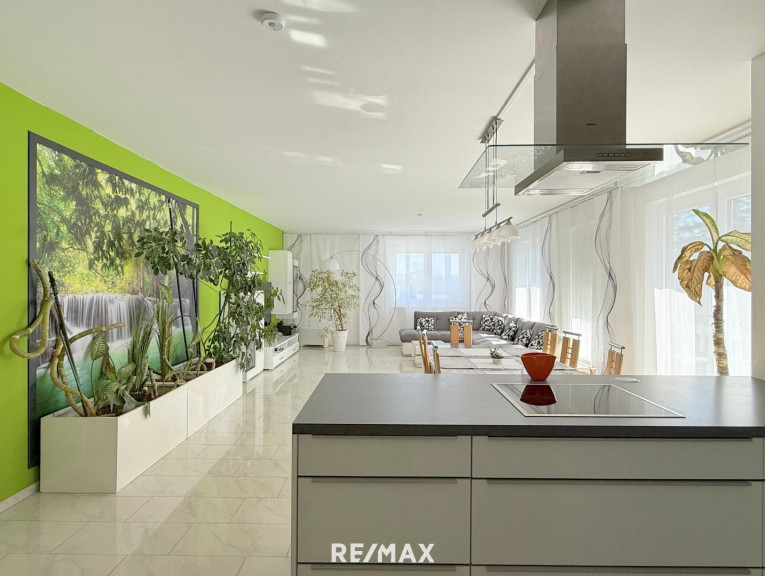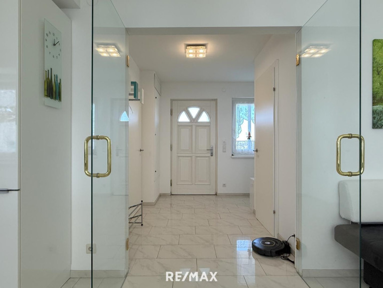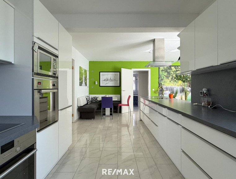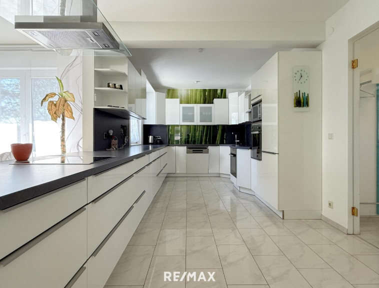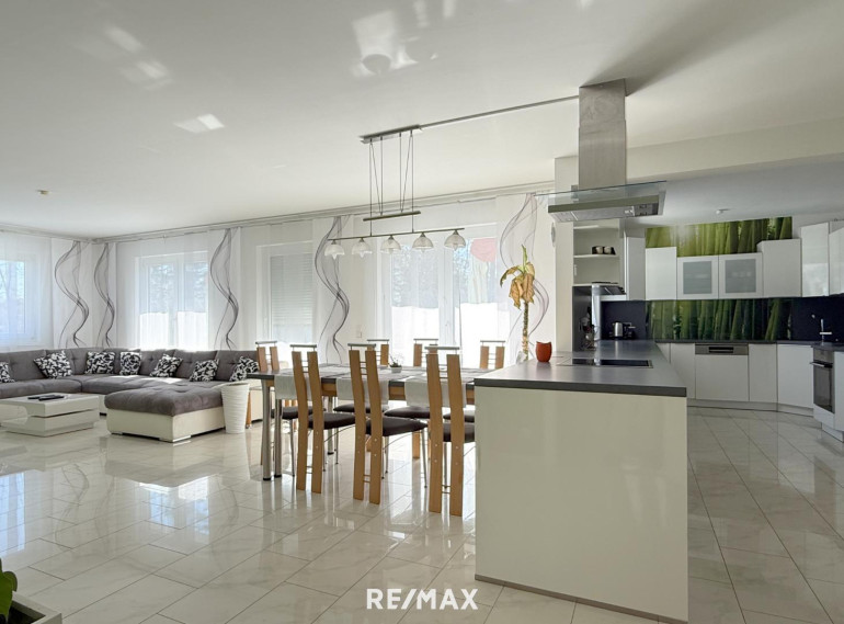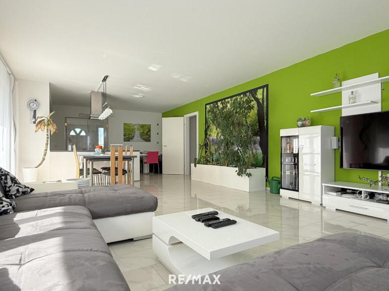 Die Küche geht fließend in das großzügige Wohnzimmer über, das sich direkt zur großen Terrasse öffnet – und hier wird der Spaß nahtlos fortgesetzt! Der Griller steht bereit, um auch draußen die besten kulinarischen Kreationen zu zaubern. Nach dem Schlemmen? Ein erfrischender Sprung in den Pool oder einfach die Sonne im Garten genießen – ohne lästiges Vis-à-Vis, denn das angrenzende Feld sorgt für die perfekte Privatsphäre. Hier können Sie ganz in Ruhe Ihre eigene kleine Welt kreieren und das Leben in vollen Zügen genießen – ohne Jemanden, der Ihnen über die Schulter schaut.