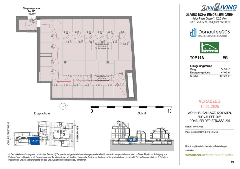 Das Neubauprojekt befindet sich in der ruhigen und grünen Gegend von 1220 Wien, in der Stadt Wien. Sie liegt in der Nähe des U-Bahn-Knotenpunkts Kagraner Platz und ist somit gut an das öffentliche Verkehrsnetz angebunden. In unmittelbarer Umgebung finden sich verschiedene Einrichtungen wie ein Arzt, eine Apotheke, Schulen, Kindergärten, eine Universität und eine Höhere Schule. Auch Einkaufsmöglichkeiten sind in der Nähe vorhanden.Beschreibung der Immobilie