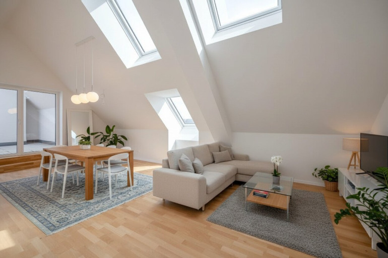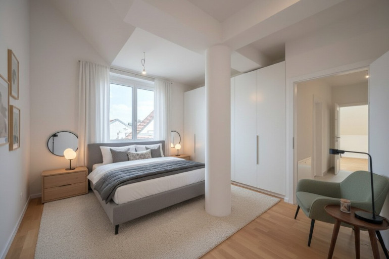 Einige der gezeigten Bilder wurden mithilfe künstlicher Intelligenz digital möbliert, um die Nutzungsmöglichkeiten der Räume zu veranschaulichen. Die tatsächliche Immobilie wird unmöbliert übergeben.