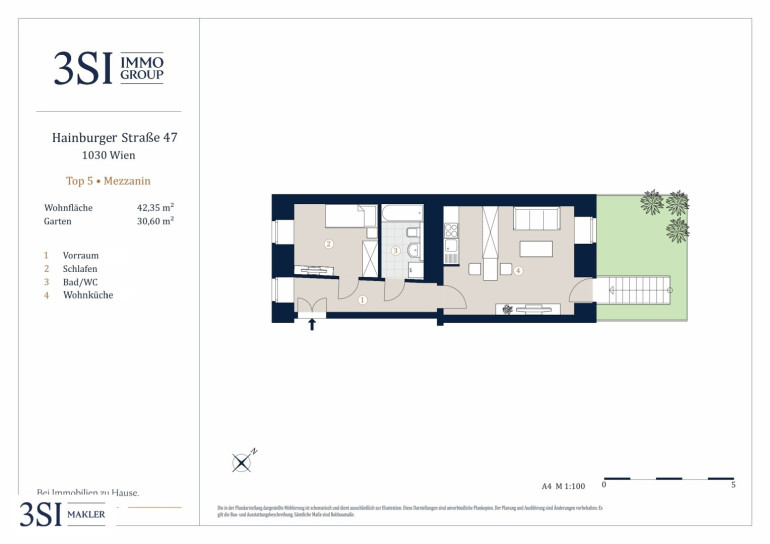 Kleine 2-Zimmer-Oase mit eigenem Garten und direkter U-Bahn-Anbindung in Top-Lage des 3. Bezirks