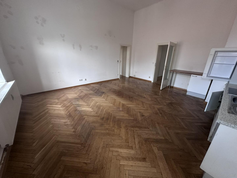Typisch für Altbauwohnungen überzeugt die Einheit durch ihre großzügigen Raumhöhen, die ein angenehmes Raumgefühl vermitteln und viel Gestaltungsfreiheit lassen. Das Badezimmer ist mit einer Badewanne und einem WC ausgestattet.