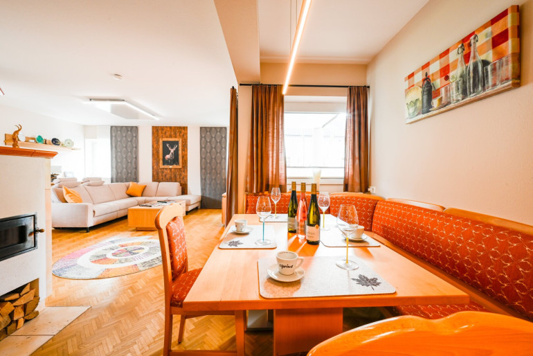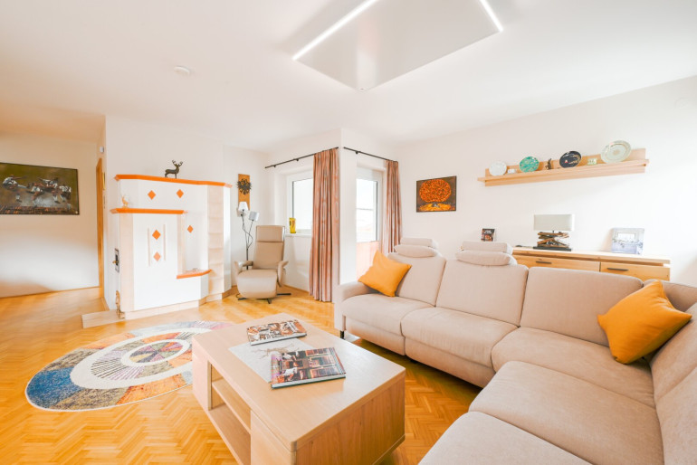 - Wohnzimmer: Das lichtdurchflutete Wohnzimmer mit Kachelofen bietet die Möglichkeit viele entspannende Stunden zu verbringen