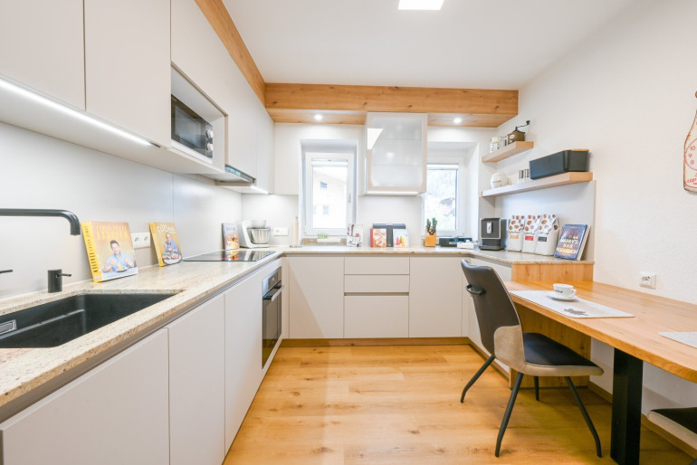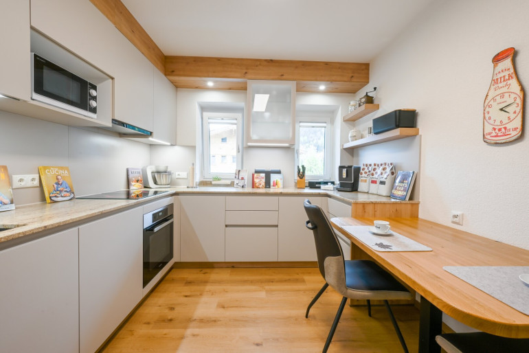 - Küche: Die top modern ausgestattete Küche ist mit einer zusätzlichen Essecke ausgestattet, die Platz für bis 2 Personen bietet. Ein Abstellraum bietet weiteren Stauraum. An die Küche angeschlossen befindet sich die Sitzecke, wo Sie viele gemütliche Stunden mit Familie und Freunden verbringen können.