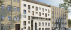 - In den Neubau harmonisch integrierte, revitalisierte Gründerzeitfassade