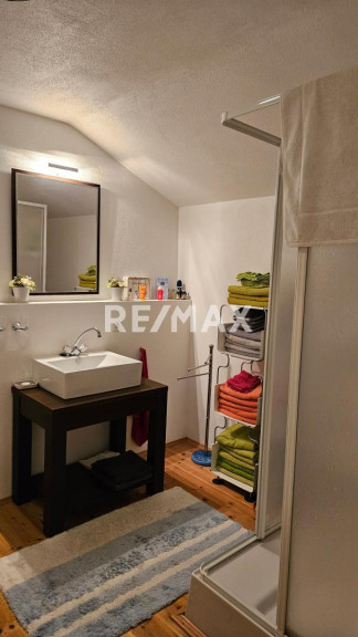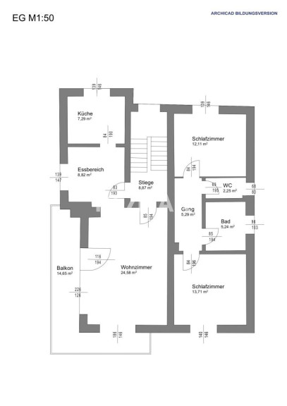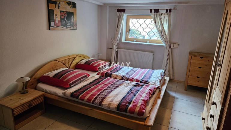 EG: abgeschlossene Küche, geräumiges Wohnzimmer mit Ausgang auf den Balkon, Esszimmer, abgeschlossener Vorraum zu den 2 Schlafzimmern, Badezimmer und WC extra.