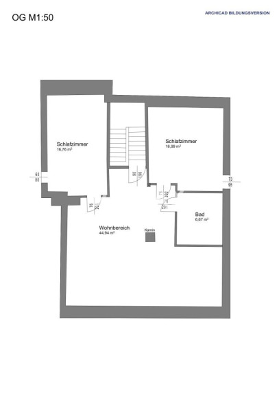 OG: 2 Schlafzimmer, Wohnbereich (Dachschrägen) und Badezimmer