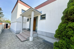 Das moderne Ziegelmassivhaus mit Flachdach ist südwestseitig in den Garten ausgerichtet und bietet mit einer großzügigen offenen Wohnküche, 3 Schlafzimmern (mit Schrankraum), 2 Bädern, 3 Toiletten, Gästezimmer und Stüberl im Untergeschoss, zahlreichen Abstellräumen und einer Sauna komfortablen Bewegungsfreiraum für eine Großfamilie oder als Generationenhaus.