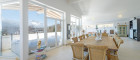 Die Wohnung liegt in einem stilvollen Wohnhaus mit nur zehn Einheiten, gebaut im Jahr 2012. Die Architektur ist zeitlos, die Bauqualität kompromisslos. Schon der Eingangsbereich vermittelt Großzügigkeit, mit ausreichend Platz für Garderobe und Stauraum. Dahinter öffnet sich ein lichtdurchfluteter Wohn- und Essbereich mit knapp 110 m² – fünf Meter Raumhöhe, raumhohe Fenster, beige großformatige Bodenfliesen mit 1,20x1,20 m in klarer Optik. Und dieser Blick: Der Watzmann wirkt hier nicht wie ein Hintergrund – er wird zum Teil des Raums.