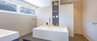 Das Hauptschlafzimmer ist ruhig gelegen, bietet auf ca. 20 m² viel Raum für Rückzug und wird durch ein eigenes Ankleidezimmer mit maßgefertigten Einbauten ergänzt. Das Badezimmer – mit Tageslicht, freistehender Wanne, großer Glasdusche und Doppelwaschtisch – folgt dem gestalterischen Anspruch der gesamten Wohnung: hochwertig, klar, unaufdringlich elegant.