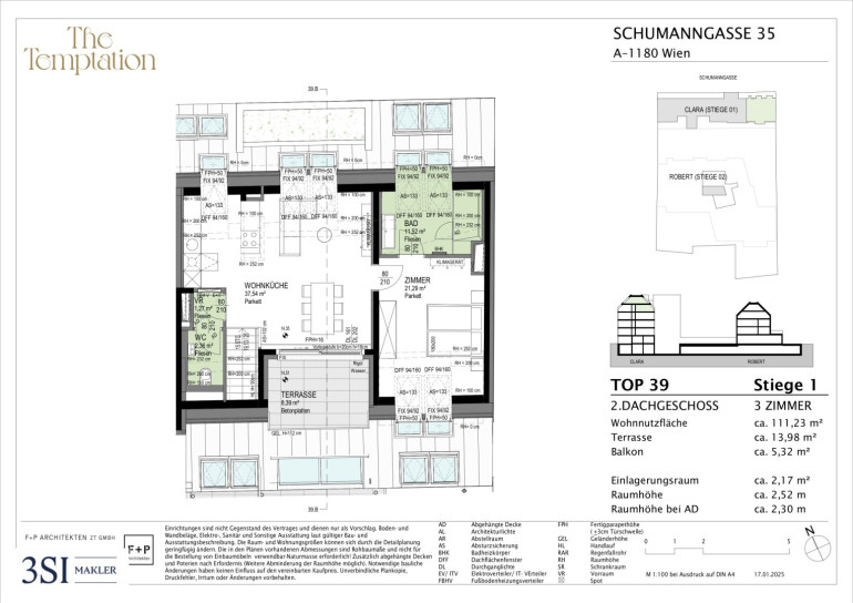 Was für ein Paar! Im Herzen von Währing vereinen sich zwei Gebäude zu einem unwiderstehlichen Wohnensemble. Ein Zuhause für diejenigen, die von außergewöhnlicher Eleganz und einzigartigem Komfort verführt werden möchten. Clara und Robert, das sind zwei Wohnhäuser mit insgesamt 85 Eigentumswohnungen und 14 Geschäftslokalen mitten im Geschehen von Währing – und das bei einer einmalig ruhigen Lage. Ob Rückzug im eigenen Garten oder direkte Anbindung ans Stadtleben – The Temptation macht beides möglich! Alle Eigentumswohnungen verfügen über 2 bis 5 Zimmer mit Größen von 37 bis 180 m² und perfekt konzipierten Grundrissen. Großzügige Balkone, Terrassen und atemberaubende private Gärten auf verschiedenen Ebenen erhöhen den Wohnkomfort. Ein besonderes Highlight ist der begrünte Innenhof, der sowohl ein Treffpunkt als auch eine Ruheoase ist. Dort, wo Nachhaltigkeit, Ästhetik und Lebensqualität aufeinandertreffen, entsteht eine unwiderstehliche Versuchung: ein modernes, frisches Leben, das zum Verlieben schön ist.