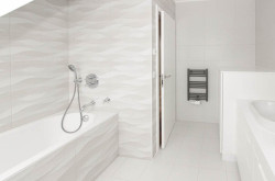 Eine stilvolle Treppe führt Sie in die obere Ebene, wo sich drei Schlafzimmer und zwei Badezimmer befinden – eines mit Dusche und das andere mit Badewanne sowie einem zusätzlichen WC. Von der oberen Etage aus haben Sie Zugang zu einer ca. 15 m² großen Terrasse, die zum Verweilen einlädt.