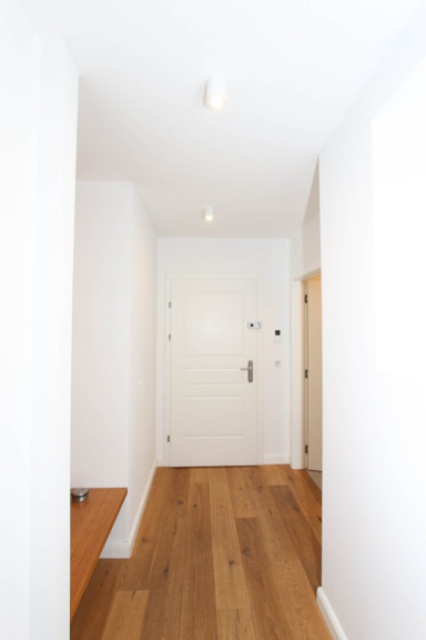 Die Wohnung ist modern und hochwertig ausgestattet und verfügt über maßgeschneiderte Einbaumöbel.