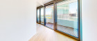 Balkon: großzügiger Balkon mit Holzboden und Glasgeländer