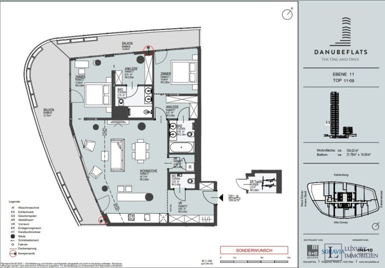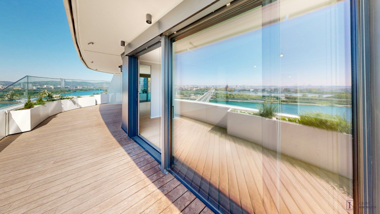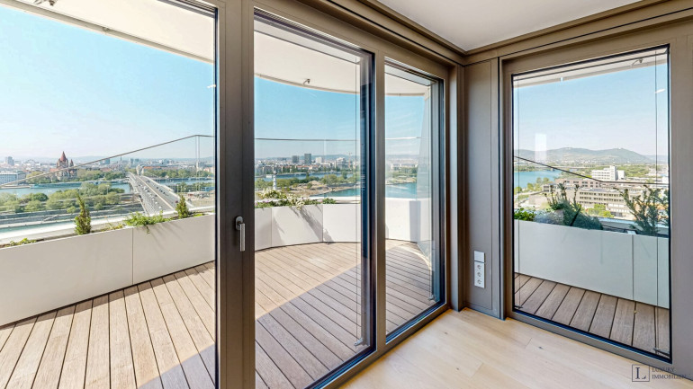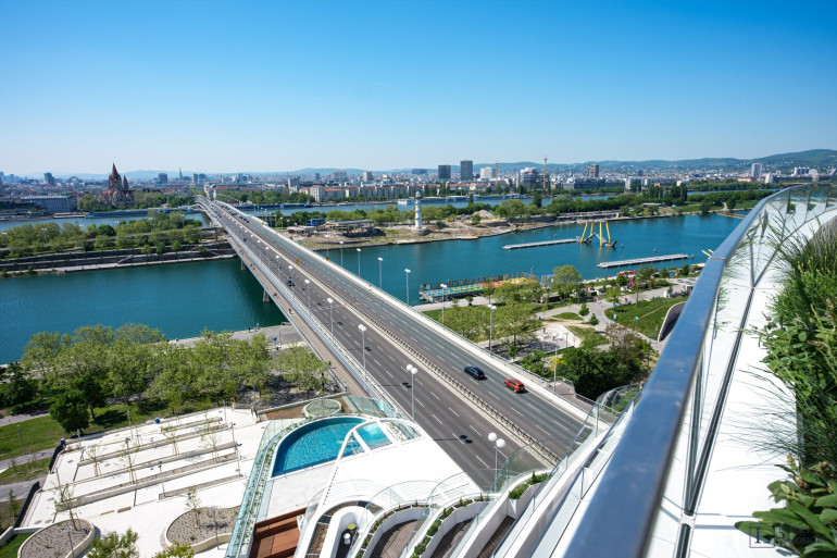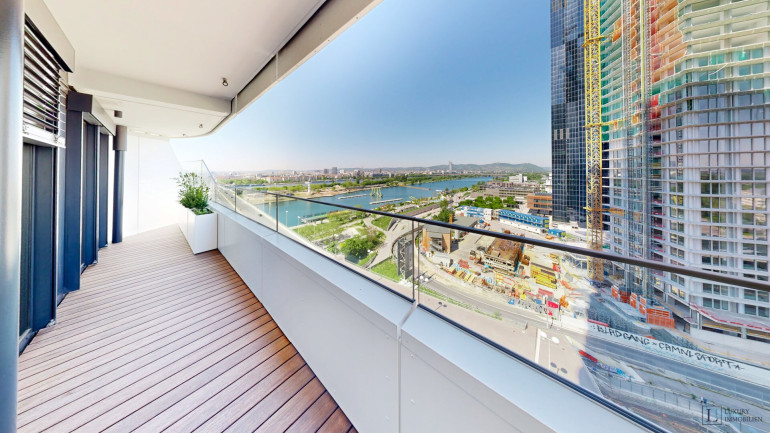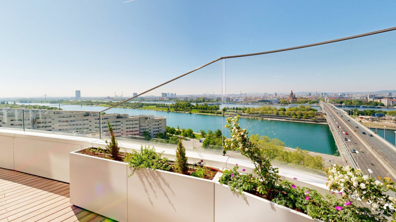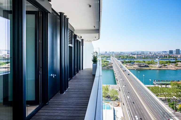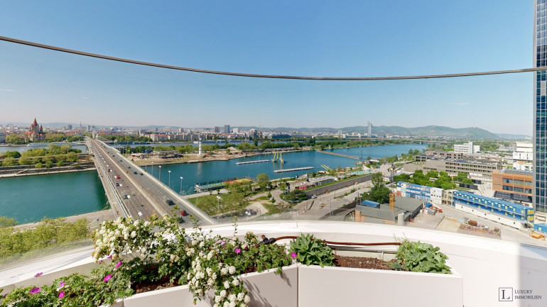 In bester Lage direkt an der Donau bieten die 48 Stockwerke und ca. 180 Meter Höhe unvergleichliche Ausblicke und Wohnkomfort auf Top-Niveau.