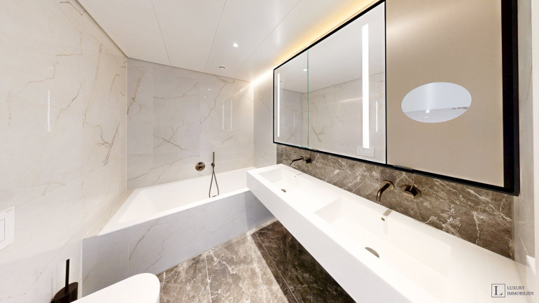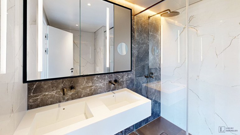 2 hochwertige Badezimmer (eins mit Dusche, eins mit Badewanne)