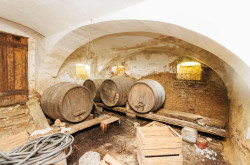 - Im Kellergeschoss befinden sich zwei beeindruckend große, hohe Gewölbekellerräume mit insgesamt ca. 60 m², die direkt von Innen und von Außen zugänglich sind.