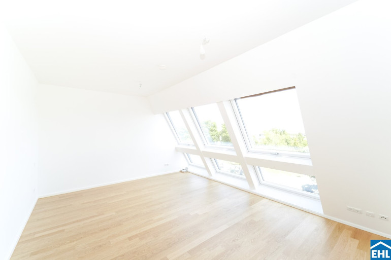 Die Liegenschaft vereint nicht nur architektonische Eleganz, sondern setzt auch in puncto Ausstattung auf höchste Standards. Große Fenster mit Dreifachverglasung lassen viel Licht in die Wohnungen und sorgen für eine angenehme Wohnatmosphäre. Raffstores bieten flexiblen Sonnenschutz und Privatsphäre. In den Wohnräumen sorgen edle Parkettböden für eine warme, wohnliche Atmosphäre, während die Bäder mit großformatigen Feinsteinzeugfliesen modern und stilvoll gestaltet sind.