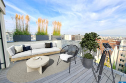 Die Wohnküche bietet direkten Zugang zu einer Ihrer, in den Innenhof ausgerichteten, Dachterrassen. Hier können Sie die warmen Sonnenstrahlen genießen, entspannen oder gesellige Abende mit Freunden und Familie verbringen.