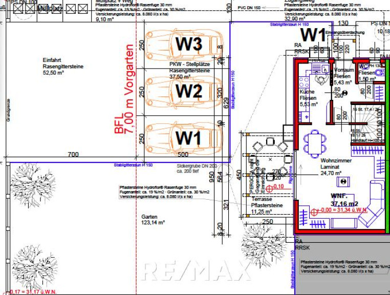 Auf dem Grundstück wird es ein Reihenhaus mit insgesamt 3 Wohneinheiten mit Wohnungseigentum geben.