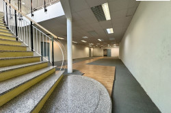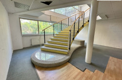 Der Verkaufsraum im Untergeschoß ist aufgrund des abgegrabenen Niveaus und einer durchgehenden Fensterfront vollwertig nutzbar. Die Verbindung erfolgt über eine knapp 2 m breite Treppe im hinteren Lokalbereich.