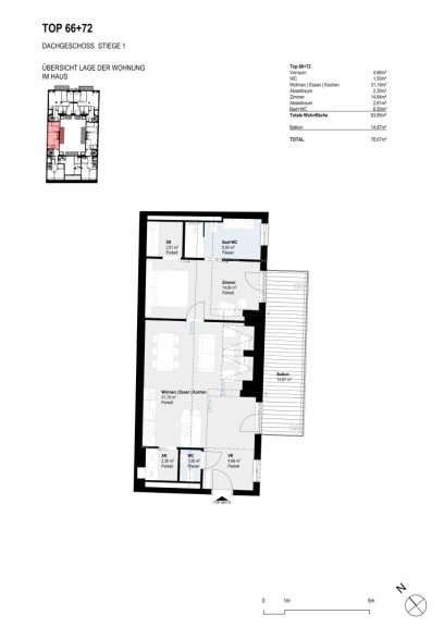 Parkett, Fliesen, Fußbodenheizung, Zentralheizung, Personenaufzug, Dusche