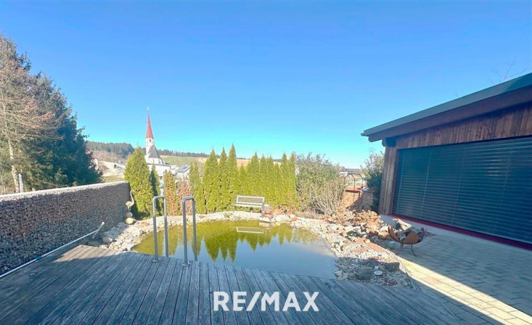 Mit liebevollen Details, nachhaltiger Bauweise und einem wunderschön angelegten Naturteich bietet dieses Zuhause Lebensqualität.
