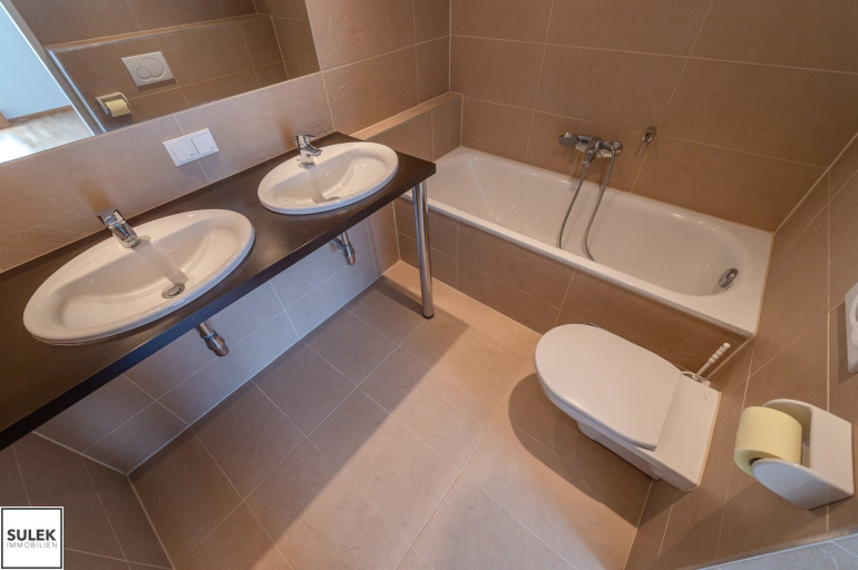 Vom zentralen Vorzimmer aus gelangen Sie der Reihe nach in alle Wohnräume, gefolgt vom Badezimmer, dem WC und dem Abstellraum (mit Waschmaschinenanschluss). Highlight der Wohnung ist eindeutig die nach Süden und Westen ausgerichtete Terrasse mit 29 m², die mit 3 Schlafzimmern und dem Wohnzimmer (offene Wohnküche) verbunden ist. Insgesamt sind 3 Schlafzimmer nach Süden ausgerichtet, das Wohnzimmer nach Westen.