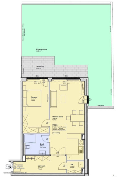 TOP 3: 2 Zimmer | 71,20 m² | 78,98 m² Garten | 14,41 m² Terrasse | € 731.000,-