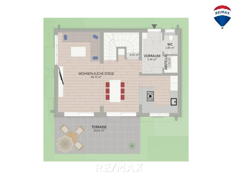Für reichlich Tageslicht sorgen die bodentiefen Fenster auf der Südwestseite im Erdgeschoß. Das ganze Haus wird mittels einer Fußbodenheizung temperiert, was für ein besonders behagliches Wohnklima sorgt. Auch das Untergeschoß verfügt über eine Fußbodenheizung und ist somit beispielsweise als Fitnessraum, Home-Office oder erweiterter Wohnraum geeignet. Die Heizung wird von einer ökologisch nachhaltigen Luft-Wasser-Wärmepumpe inklusive Kühlfunktion gespeist. Eine Klimaanlage und elektrisch bedienbare Außenrollläden gehören selbstverständlich zur Grundausstattung. Somit bleibt Ihr Haus auch in den heißen Sommertagen angenehm temperiert. Eine klimafreundliche Photovoltaikanlage ermöglicht Ihnen, eigenen Strom zu produzieren. Dank des Stromspeichers sind Sie auch im Falle eines kurzzeitigen Stromausfalls geschützt. Ihr Auto können Sie ganz bequem in der ebenfalls im Kaufpreis inkludierten Wallbox laden. Zudem verfügt das Haus über einen praktischen Wäscheabwurfschacht.