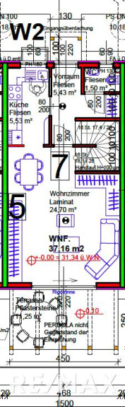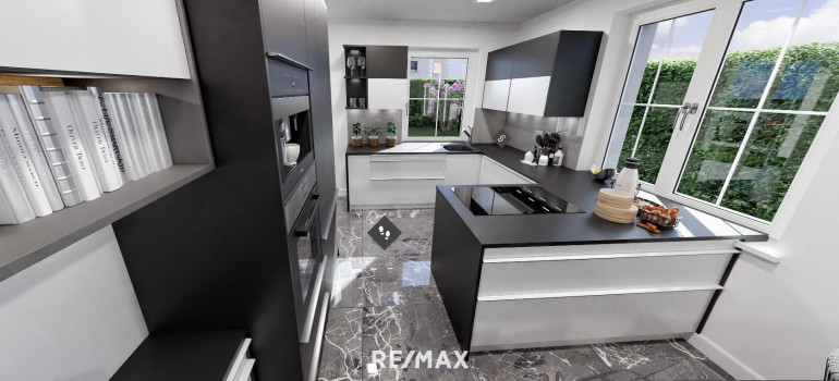 Dieses moderne, dreigeschossige Reihenhaus überzeugt durch seine durchdachte Raumaufteilung, hochwertige Ausstattung und energieeffiziente Bauweise. Es bietet insgesamt vier großzügige Zimmer, zwei voll ausgestattete Badezimmer sowie 3 WCs – ideal für Familien mit Kindern. Der lichtdurchflutete Wohnbereich im Erdgeschoss öffnet sich direkt zur Terrasse und dem eigenen Garten (36,98 m2) der ausreichend Platz für Erholung, Spielen oder Gartenarbeit bietet.