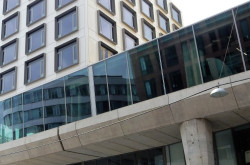 - manueller innenliegender Blendschutz bzw. in Teilbereichen manueller innenliegender Sonnenschutz in der Fassadenkonstruktion