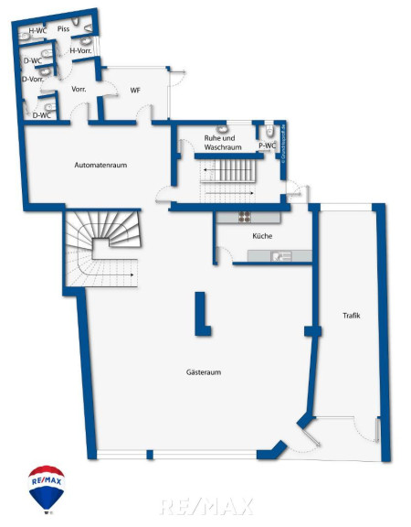 Gasthausfläche: ca. 160 m² – mit Gastraum, Küche und Nebenräumen