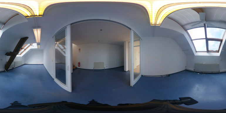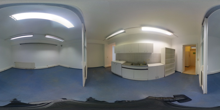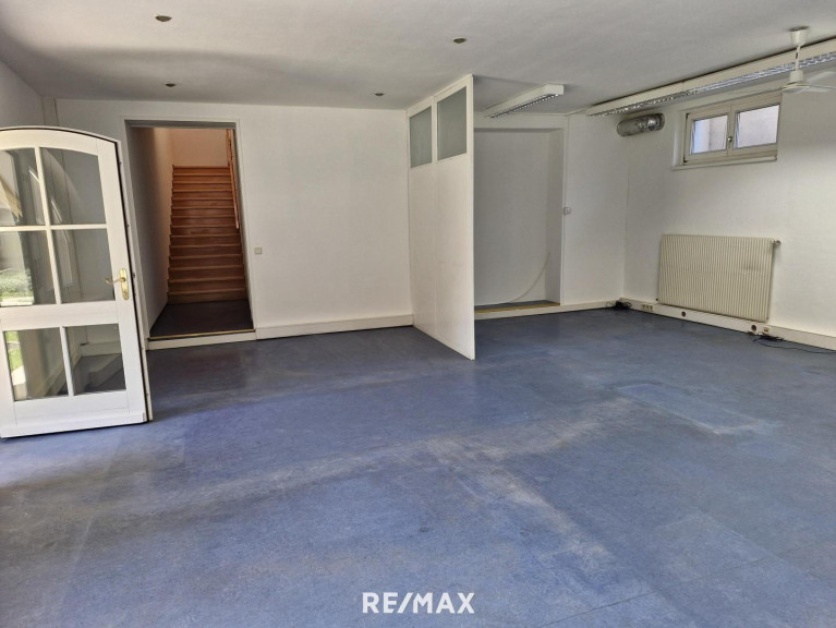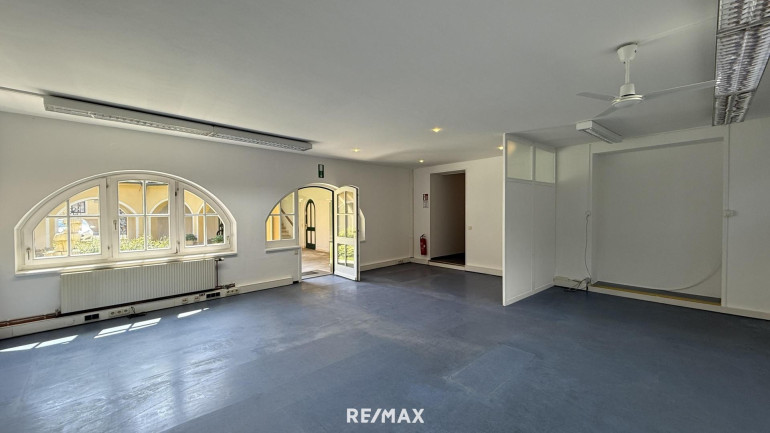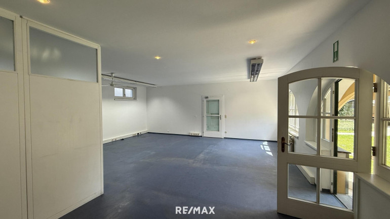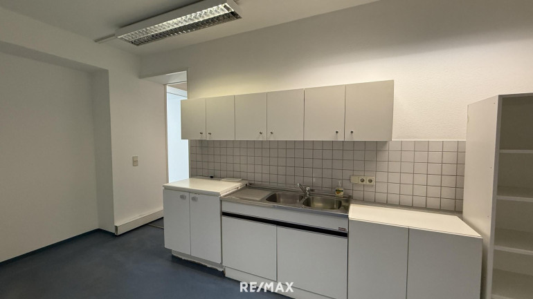 Die erste Einheit, im EG gelegen, umfasst 104,8 m² und besteht aus einem großen Büroraum, Nebenräumen, einer Küche und einem WC.