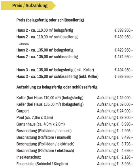 Die Immobilie wird belagsfertig hergestellt, es bestehen jedoch einige Erweiterungsmöglichkeiten gegen Aufpreis