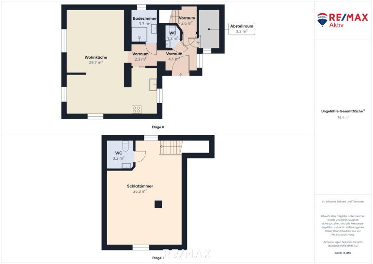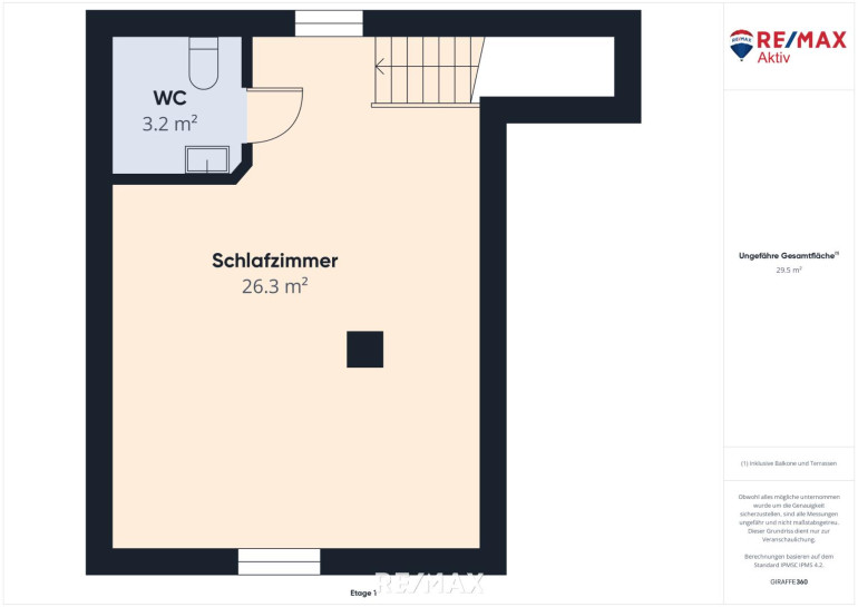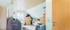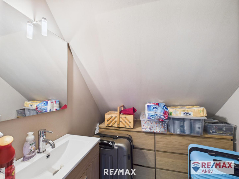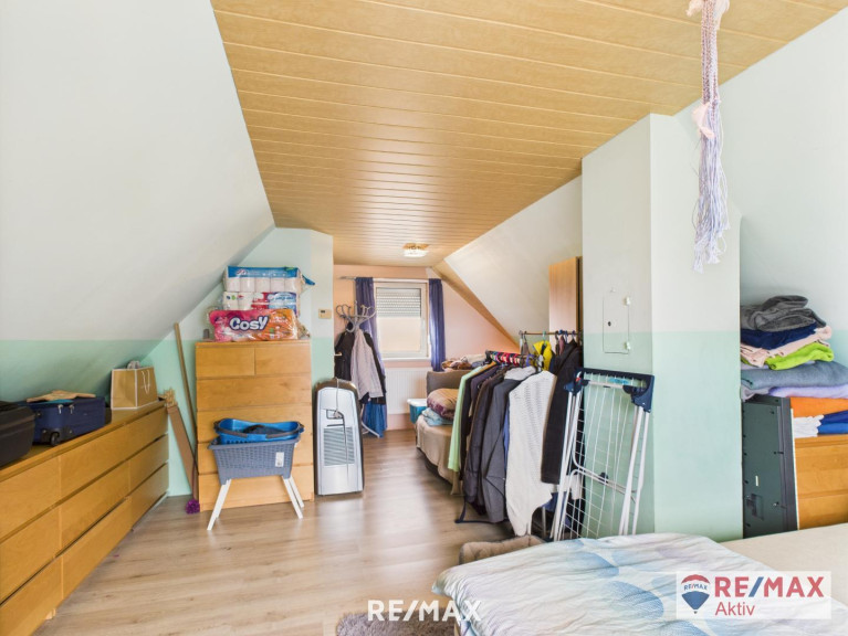 Das Obergeschoss bietet ein geräumiges Schlafzimmer mit eigenem WC, das für Privatsphäre und Komfort sorgt. Die gesamte Etage ist dem Schlafbereich gewidmet und bietet somit eine ruhige Rückzugsmöglichkeit.