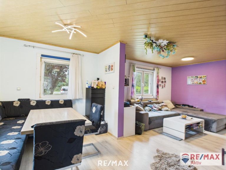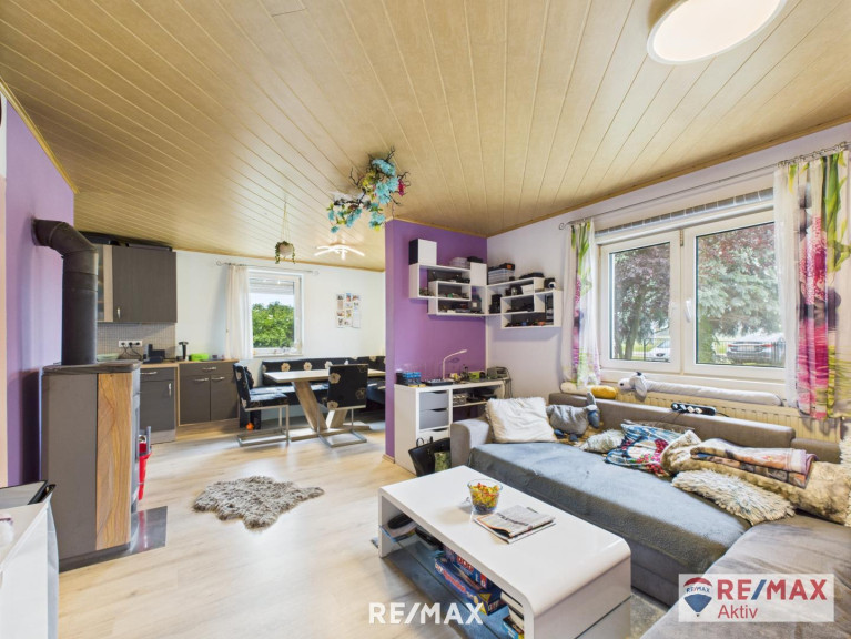 Das rund 2.077 m² große Grundstück bietet jede Menge Raum für Gartenfreunde, Bastler oder Selbstversorger. Die Wohnfläche von ca. 76 m² verteilt sich funktional auf einen großzügigen Wohn- / Essbereich mit anschließender Küche, einen Abstellraum, Vorraum, Badezimmer und ein separates WC. Ein gemütlicher Schwedenofen im Wohnbereich sorgt neben der Gas-Zentralheizung für behagliche Wärme. Die Küche wurde 2009 erneuert, das Dach, die Fenster und der Kamin im Jahr 2004 saniert.