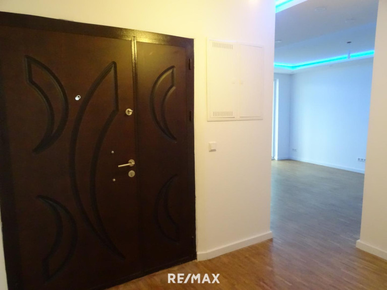 Vom Flur kommt man in den offenen Wohnbereich, der mit einer indirekten Beleuchtung ausgestattet ist und zur Loggia führt.