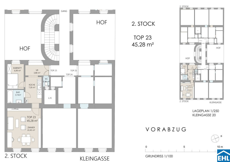 Besonders hervorzuheben ist die außergewöhnlich ruhige Wohnatmosphäre, von der in dieser Gasse nicht nur die hofseitigen Räume profitieren.
