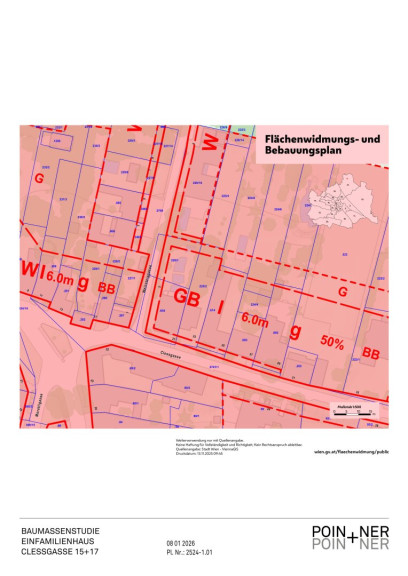 Alternativ könnte das bestehende Wohnhaus saniert werden und mit einem Aufbau versehen werden. Der Altbestand besteht aus Vorraum, WZ, Küche Schlafraum, Sanitärbereich und einem Lagerraum mit Werkstätte. Die Widmung erlaubt einen Dachgeschossausbau und/oder eine Teilverbauung des Gartens. Da das Objekt nicht unterkellert ist, erscheint ein Neubau sinnvoller als eine Sanierung.
