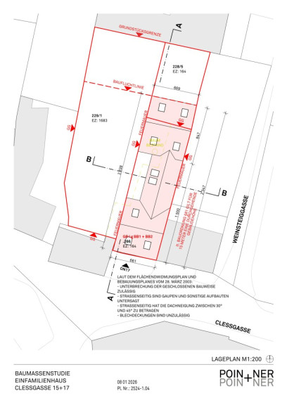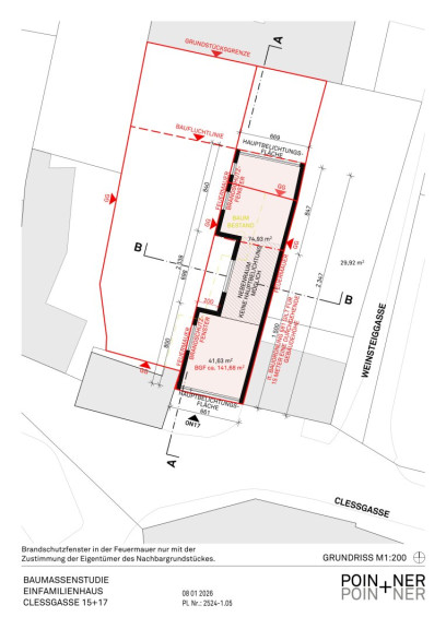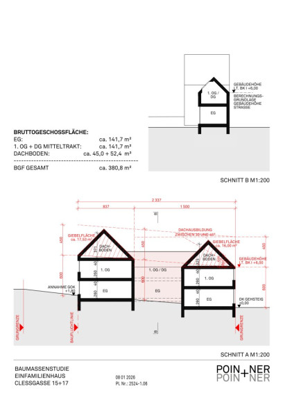 Zu empfehlen ist hier ein Neubau. Die erzielbare Nettonutzfläche beträgt ca. 210m² plus weitere ca. 90 m2 im Dachgeschoss. Attraktive Gestaltung mit zwei Baukörpern und einem Verbindungselement.